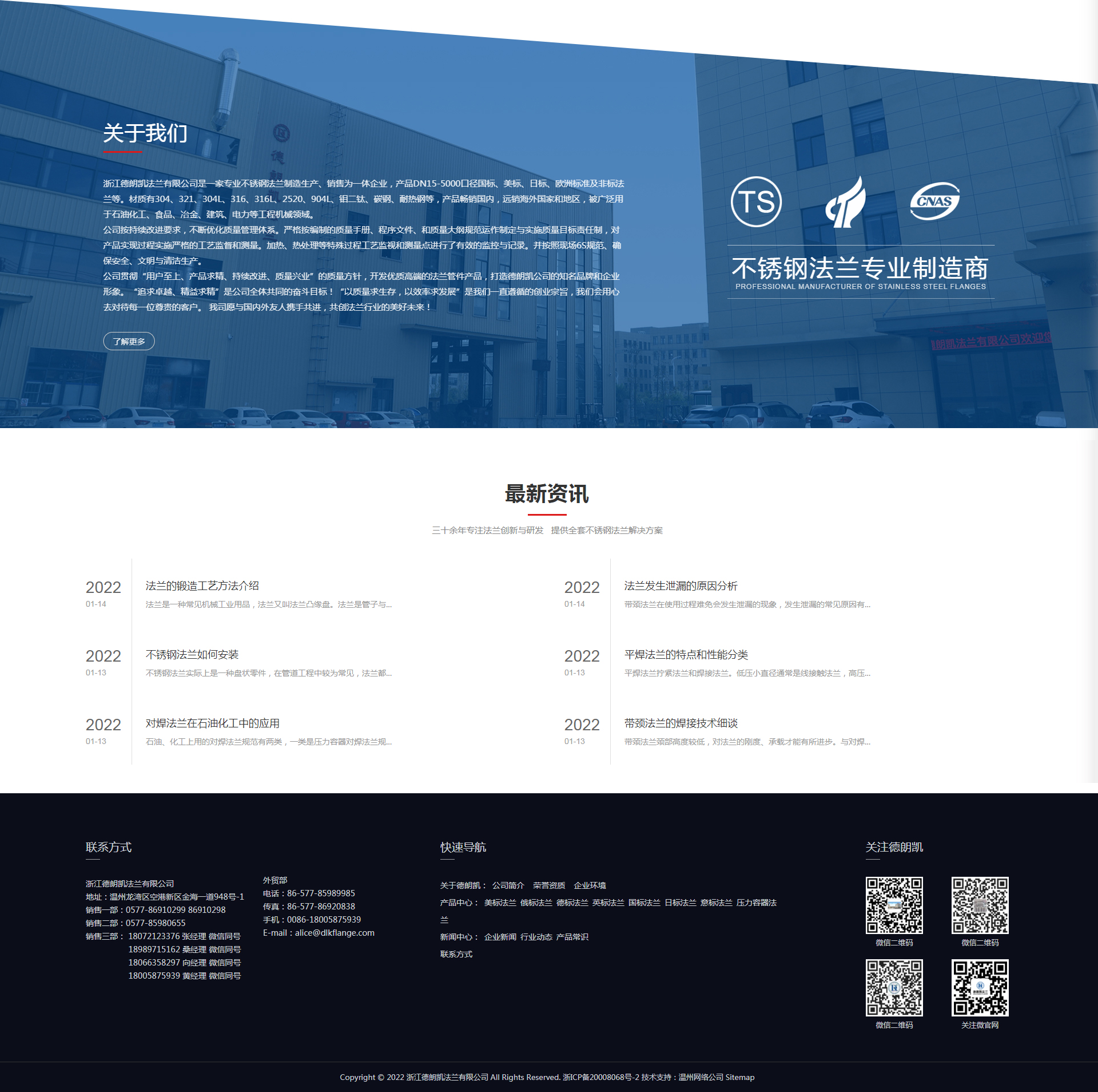 浙江德朗凱法蘭有限公司是一家專(zhuān)業(yè)不銹鋼法蘭制造生產(chǎn)、銷(xiāo)售為一體企業(yè),產(chǎn)品DN15-5000口徑國(guó)標(biāo)、美標(biāo)、日標(biāo)、歐洲標(biāo)準(zhǔn)及非標(biāo)法蘭等。材質(zhì)有304、321、304L、316、316L、2520、904L、鉬二鈦、碳鋼、耐熱鋼等,產(chǎn)品暢銷(xiāo)國(guó)內(nèi),遠(yuǎn)銷(xiāo)海外國(guó)家和地區(qū),被廣泛用于石油化工、食品、冶金、建筑、電力等工程機(jī)械領(lǐng)域。